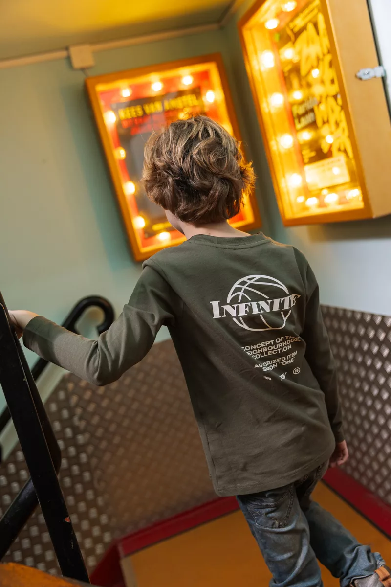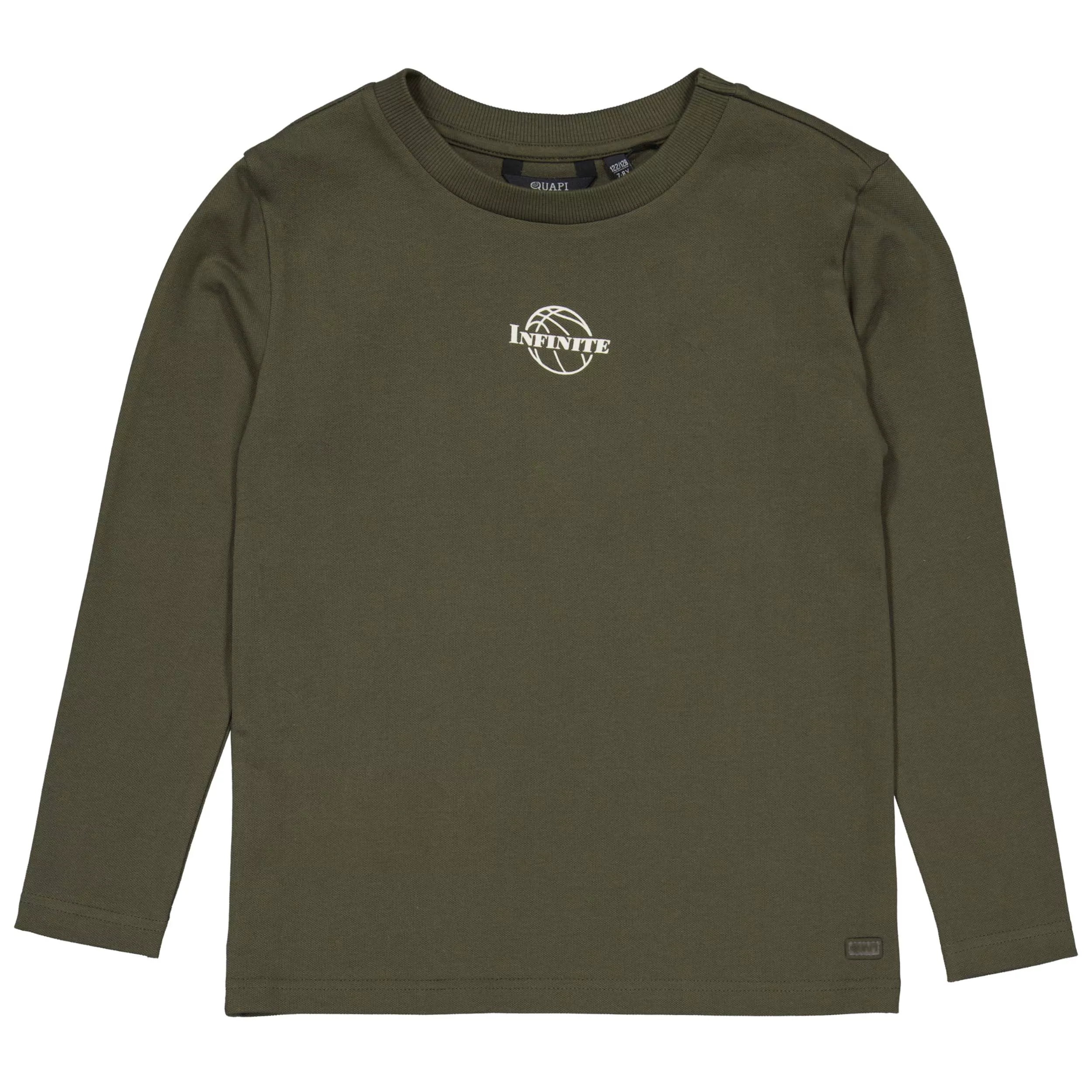 T-shirt manches longues vert foncé de chez Quapi au joli imprimé dans le dos, est un beau basique à avoir dans le dressing
